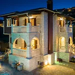 La Fairytale Villa Apolpaina, situada a 25 minutos a pie de la Playa de Alikes, cuenta con una terraza con vistas a las montañas.